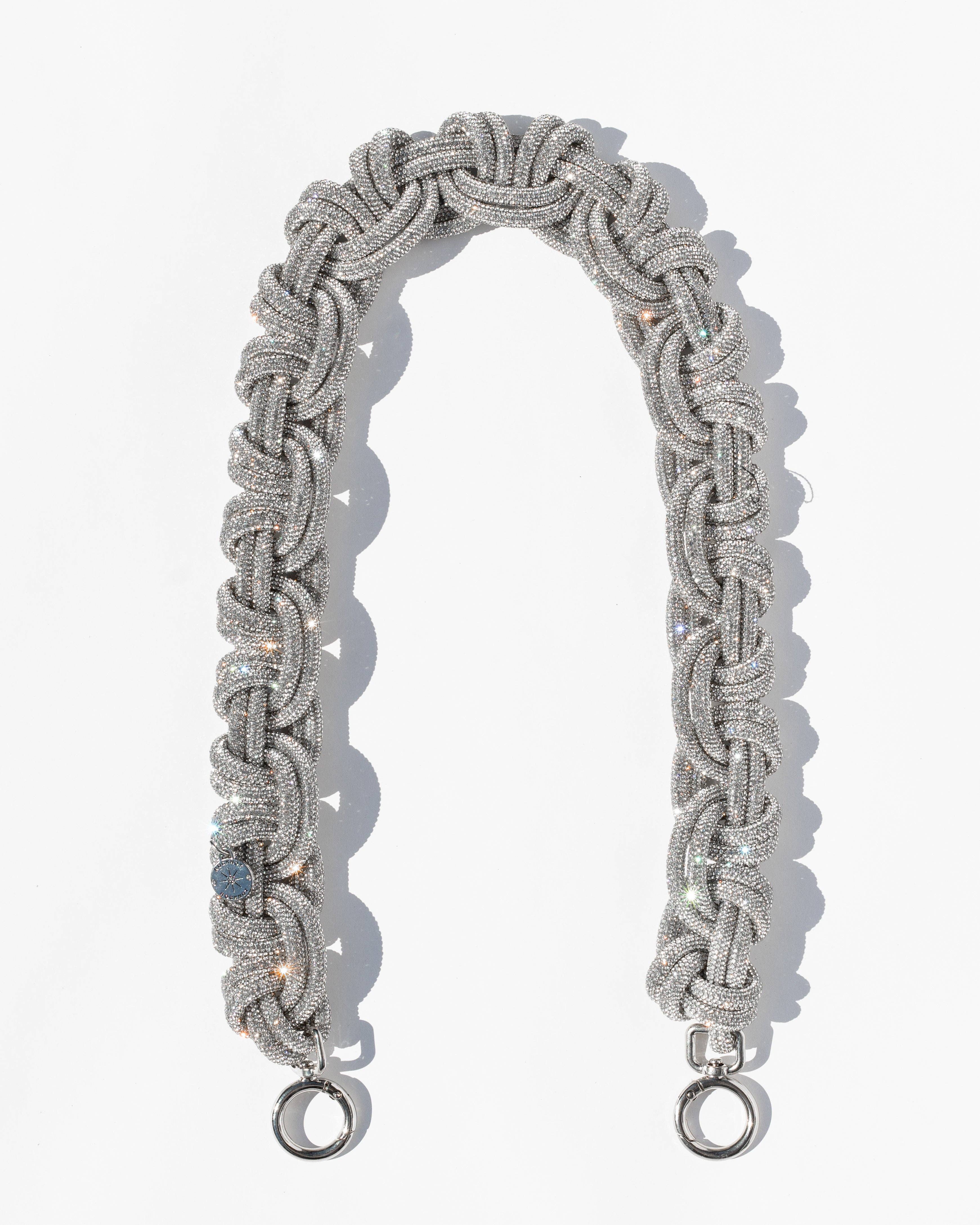 RS038W Sparkling Rhinestone Lattice Web pattern Strap is an interchangeable and adjustable crossbody strap that exudes elegance and luxury. This versatile piece is crafted with sparkling rhinestones, designed to make a sophisticated statement and elevate any outfit. Perfect for those seeking a touch of glamour, the RS038S will lend a timeless yet modern touch to your any bags. * Adjustable high quality rhinestone handbag strap * Gold-tone hardware * Metal clasps at both ends * Strap is approximately 27" - 51"