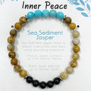 NURTURING • TRANQUILITY • STRENGTH Kiwi Jasper is peaceful and positive for when you need some comforting energy. This nurturing stone will summon the emotional strength needed to face personal problems, and release harmful or addictive behaviors that are holding you back. Let go of what no longer serves you with Kiwi Jasper. Genuine semiprecious stones surrounded by solid brass beads and securely strung on adjustable cord bracelets. Handmade in Brooklyn, NY.