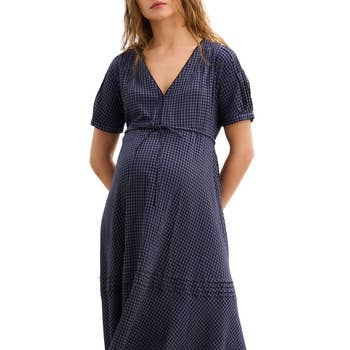 This versatile nursing poncho is just what your wardrobe needs. Wear it as a poncho or scarf during pregnancy to keep you and your bump warm, or as a cover up to discreetly breastfeed while out and about. Key features: • Soft viscose construction for comfort. • Loose fit to flatter during pregnancy. • Versatile piece, worn in many ways: 1. Maternity: wear over any outfit to cover your bump or add warmth. 2. Nursing: perfect cover for breastfeeding discreetly. 3. Baby: fit over stroller to shield bub from the elements. Color: Navy Print.