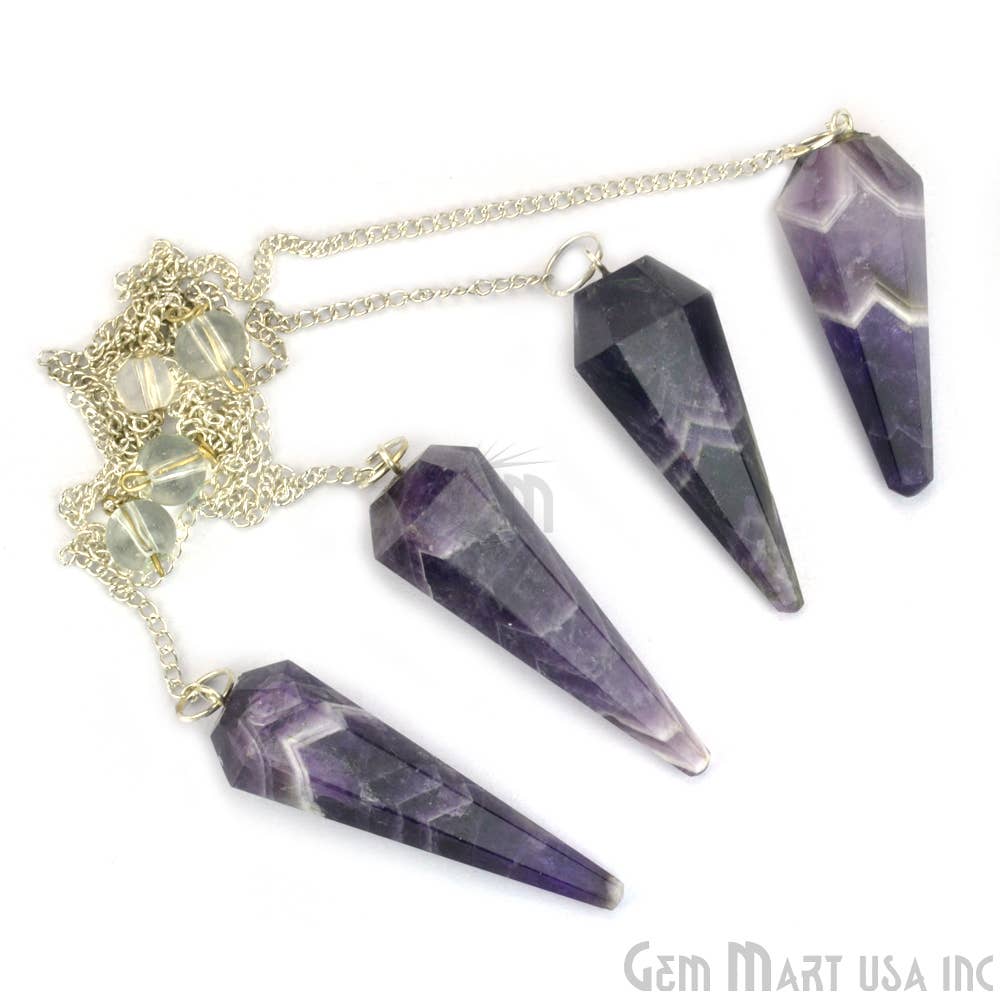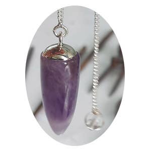 Beautifully crafted from all-natural Amethyst Gemstone Chips with Copper wire set in Resin forms this Pendulum with silver-plated chain and lobster clasp. *Ideal for divination, energy work, or as a unique crystal necklace. Gemstone: Semi Precious Amethyst-All Natural Pendulum Size: Approx. 2.5"/6.5mm Chain: Silver-plated with lobster clasp, Length 7.5" Long Use: “Yes/No” energy work, crystal healing, or wearable spiritual jewelry The answers provided through pendulum use are intended for informational and entertainment purposes only. They should not be considered a substitute for professional advice, diagnosis, or treatment from qualified professionals in legal, medical, financial, or psychological fields. This picture is an representation of the type and quality of the gemstone you will be receiving. As you know, there are slight variations due to the natural character of this product. advice.
