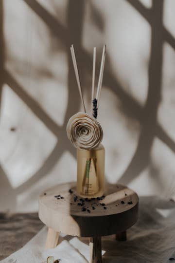 Awaken brings crisp citrus, herbal greens, and oceanic depth into your space with a clean, flame-free delivery. It’s energizing without being overpowering—perfect for quiet mornings, workspaces, or slow, intentional starts. Infused with Petrified Wood, this diffuser helps foster focus, stability, and a sense of rooted awareness throughout your day. Details: • Scent Notes: Sea Salt, Orange Peel, Grass, Eucalyptus, Sage, Marine, Patchouli, Teakwood, Moss • Alcohol-free, phthalate-free base • Includes 3 black fiber reeds, 2 flower rattan reeds, and 1 spiral rattan reed • Petrified Wood for grounded clarity & energetic renewal • Long-lasting, 2 oz fragrance oil