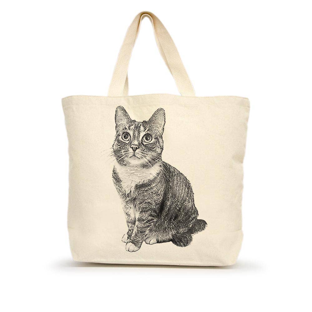 Design by Kenji Mera A spacious 15" x 16" tote bag. 100% heavy cotton canvas, 20" web canvas handles, 9" handle drop Every order is hand printed just for you in Los Angeles CA by our small team.