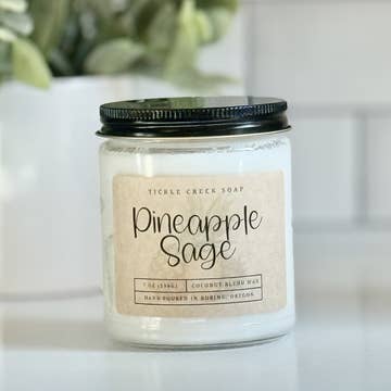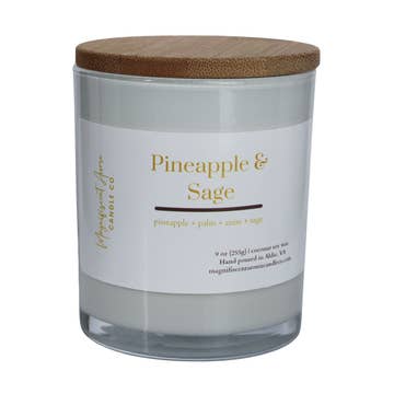 Price Per Unit: $14.00 Notes of pineapple, rosemary, and wild sage. Smells like fresh & tropical pineapple chunks united with fresh, herbal sage, rosemary and green leaves which makes for a delicious and relaxing aroma. Our candles are made with coconut wax, phthalate-free fragrance oils and two lead-free cotton wicks. Approx. 45-50 hour burn time. Comes with a wooden lid. Item details: - 10oz. net weight - Height: 4" - Width: 3.5" - Weight Per Candle: 1.5 lbs. (approx) Candle care: Trimming wicks to 1/4" before each and every burn reduces soot and increases the lifespan of the candle by allowing it to burn cooler and slower. All products are made to order and we do our best to get your order made and shipped out as quickly as possible.