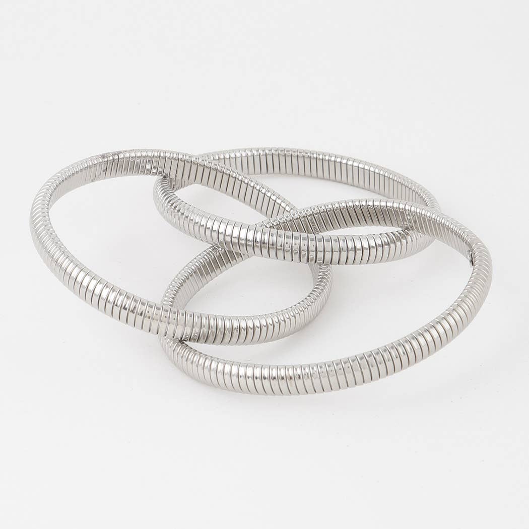 Meet your new favorite layered bracelet! With the Infinity Multi Layered Bracelet you get that layered look with one of the best selling snake texture. It is the perfect layered bracelet for a simple everyday look or a crazy night out on the town. * 18K Gold Plated over Sterling Silver * Water & Tarnish Resistant * Hypoallergenic