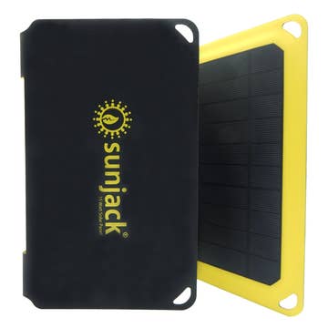 Powerful and durable - shock, vibration, and weather resistant. Charge your phone, tablet, lights, camera, music, or any USB device on the go. A must have for for camping, traveling, and emergency kits, SunJack provides you rugged outdoor power when you need it. Never be caught without power. What's in the box : - SUNJACK 15 Watt Portable Solar Charger with dual 2 Amp USB output ports - 1 SUNJACK Carabiner Technical Specifications: - Solar panel: 15 Watts of high efficiency mono-crystalline power - Max output voltage/current: Two 5V/2A USB ports - Unit Size folded: 10.5" x 6.5" x 1.2" (26.7cm x 16.5cm x 3cm) - similar to an iPad. - Unit Size unfolded: 20" x 10.5" x 1" (50.8cm x 26.7cm x 2.5cm) - Unit Weight: 1.3 lbs / 0.6 kg