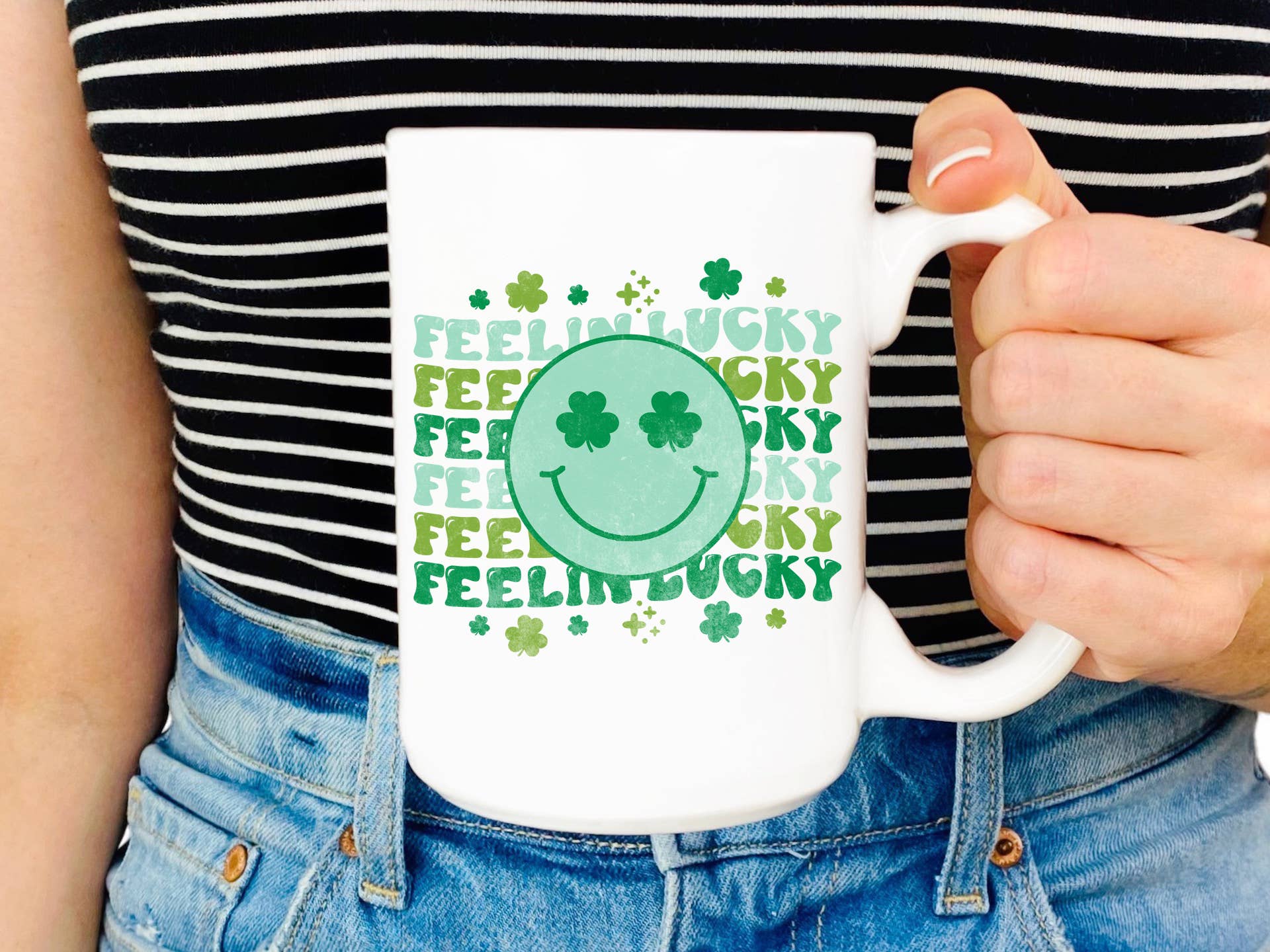 In My Lucky Era - St Patrick's Day Shamrock Coffee Mug Printed and Shipped in North Carolina Top Rack Dishwasher Safe. Double Sided Print.
