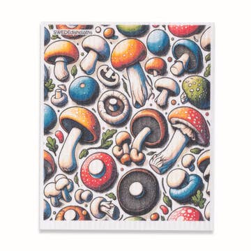 Tall & Colorful Mushrooms Swedish Dishcloth
