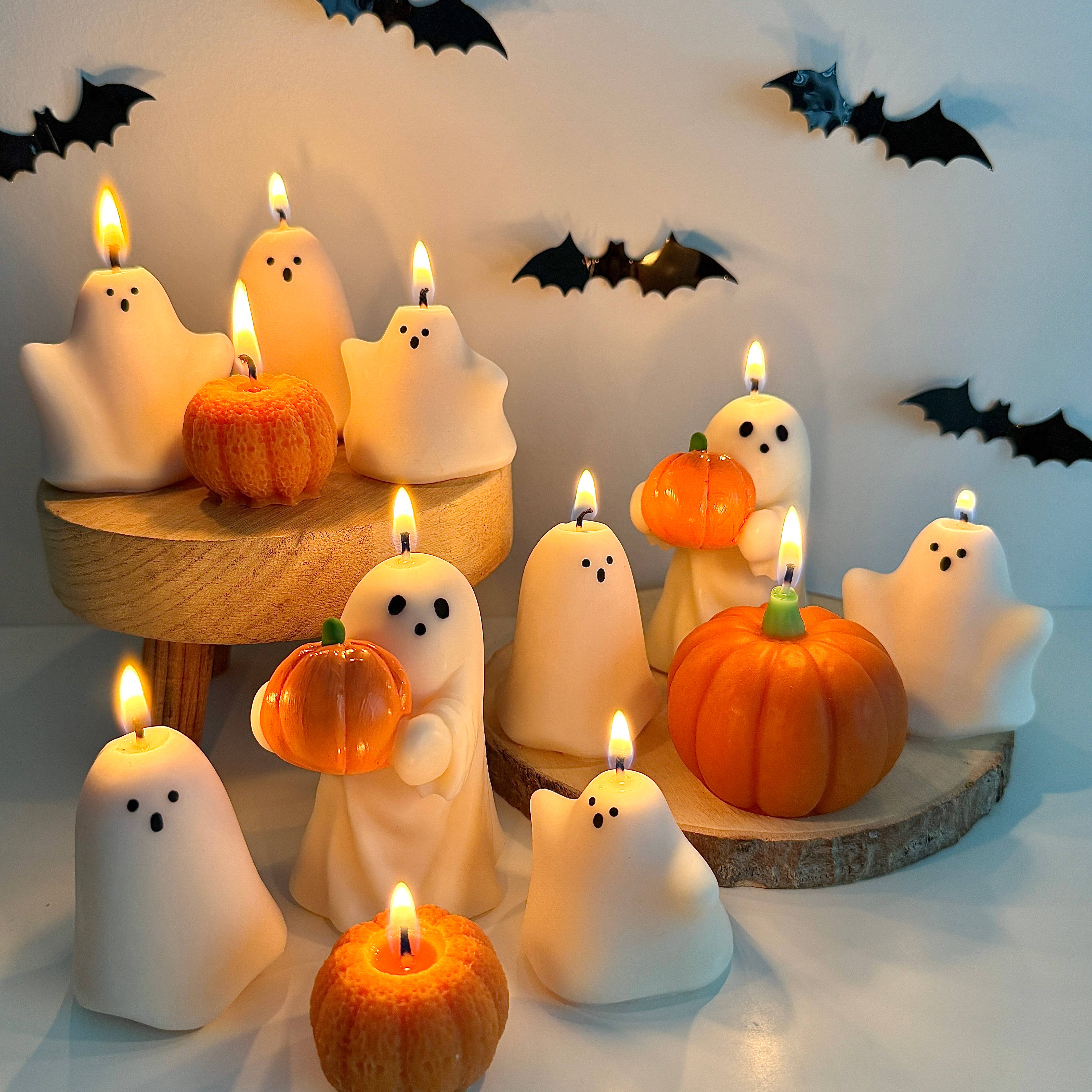 Bring the boo-tiful glow of Halloween to your home with our handcrafted Spooky Ghost Dough Bowl Candle! This charming candle features a creamy soy wax base in a rustic wooden bowl, complete with a mini ghost centerpiece (Ghosts have 3 different styles as shown in picture, you will get a variety with a multiple order quantity) and two crackling wooden wicks. It’s the perfect eerie accent for cozy autumn nights, haunted gatherings, or seasonal gifting. Each candle is poured with love and just the right amount of spooky fun to delight guests and ghouls alike! 👻 Adorable ghost-shaped detail 🔥 Two wooden wicks for even burn and crackle effect 🎃 Great for Halloween décor or spooky gifts Each candle is made with 100% soy wax and high-quality fragrance oil. Our oval dough bowl candles all have wooden wicks. Average size is approx. 9”L X 6”W X 2-2.5”H Volume is approx 20-24 fld oz. Measurements do vary. Due to the handmade nature of the bowls color shade and shapes can vary.