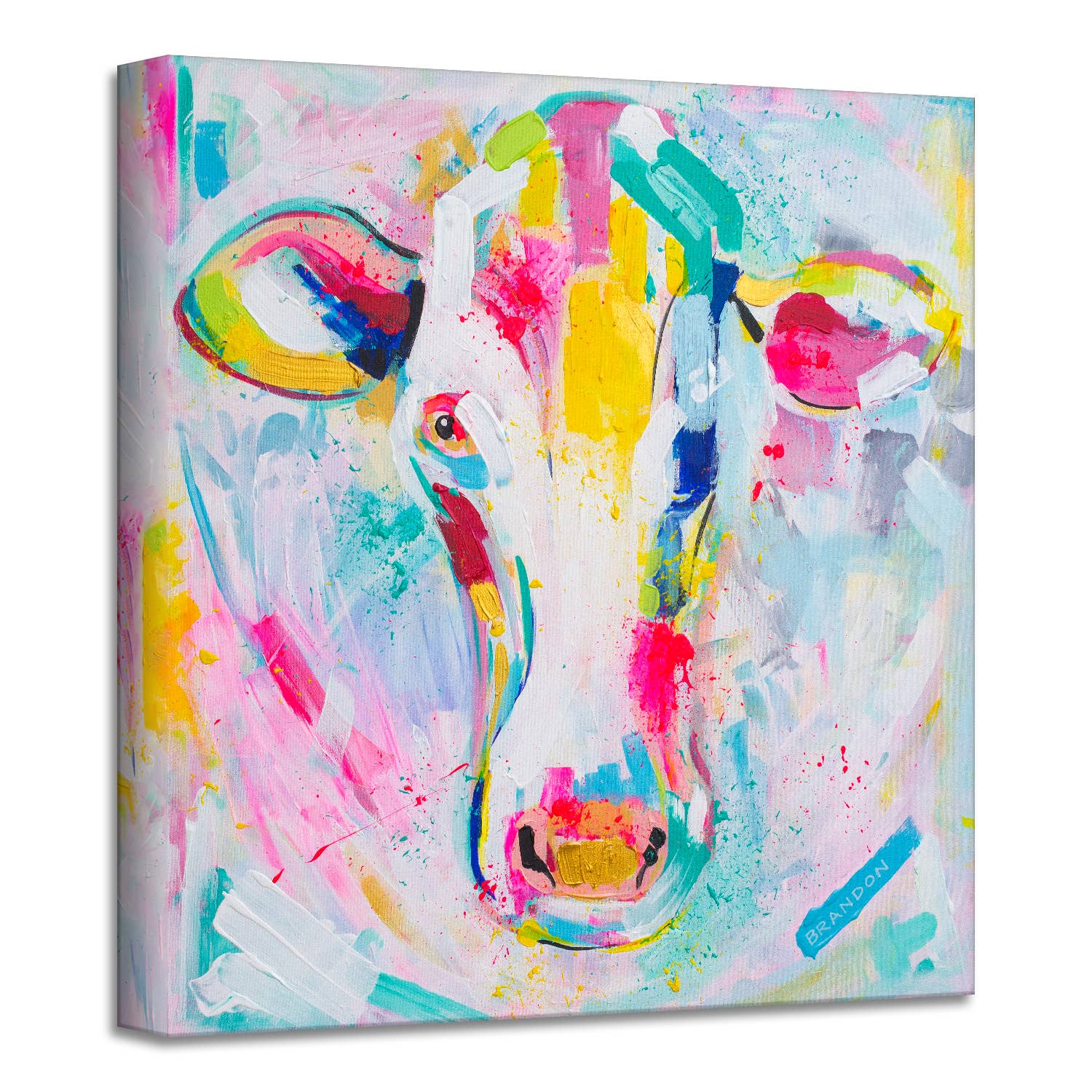 Ready2HangArt decorative pet artwork, 'Retriever Duo,' by Brandon Thomas celebrates the furry critters in your life. Infuse your wall decor with the brilliant color and endearing character found in this captivating, yet simple abstract animal canvas art. Made in the USA, this modern dog painting print will complement your home with a vibrant and playful aesthetic. Product Features: Poly-Cotton Matte Canvas. UV/Water Resistant Material. Kiln Dried Pine Wood Stretcher Bar. Hardware Included for Easy Install. Available Sizes: 16 in. h x 12 in. w. 20 in. h x 16 in. w. 40 in. h x 30 in. w. Additional Features: Orientation: Portrait. Colors: Blue, Green, Yellow, Brown, Red, Pink, Black, Gray, White, Beige. Artist: Brandon Thomas. Title: Retriever Duo. Model No. BT008. Care Instructions: To clean, wipe with a damp cloth. Do not use cleaning solutions.