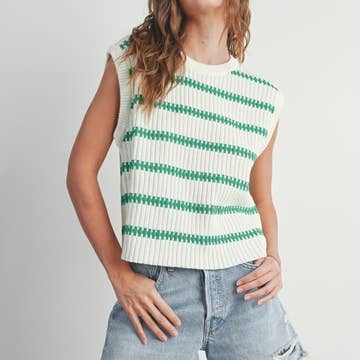 POINTELLE CHUNKY KNIT STRIPED TANK TOP