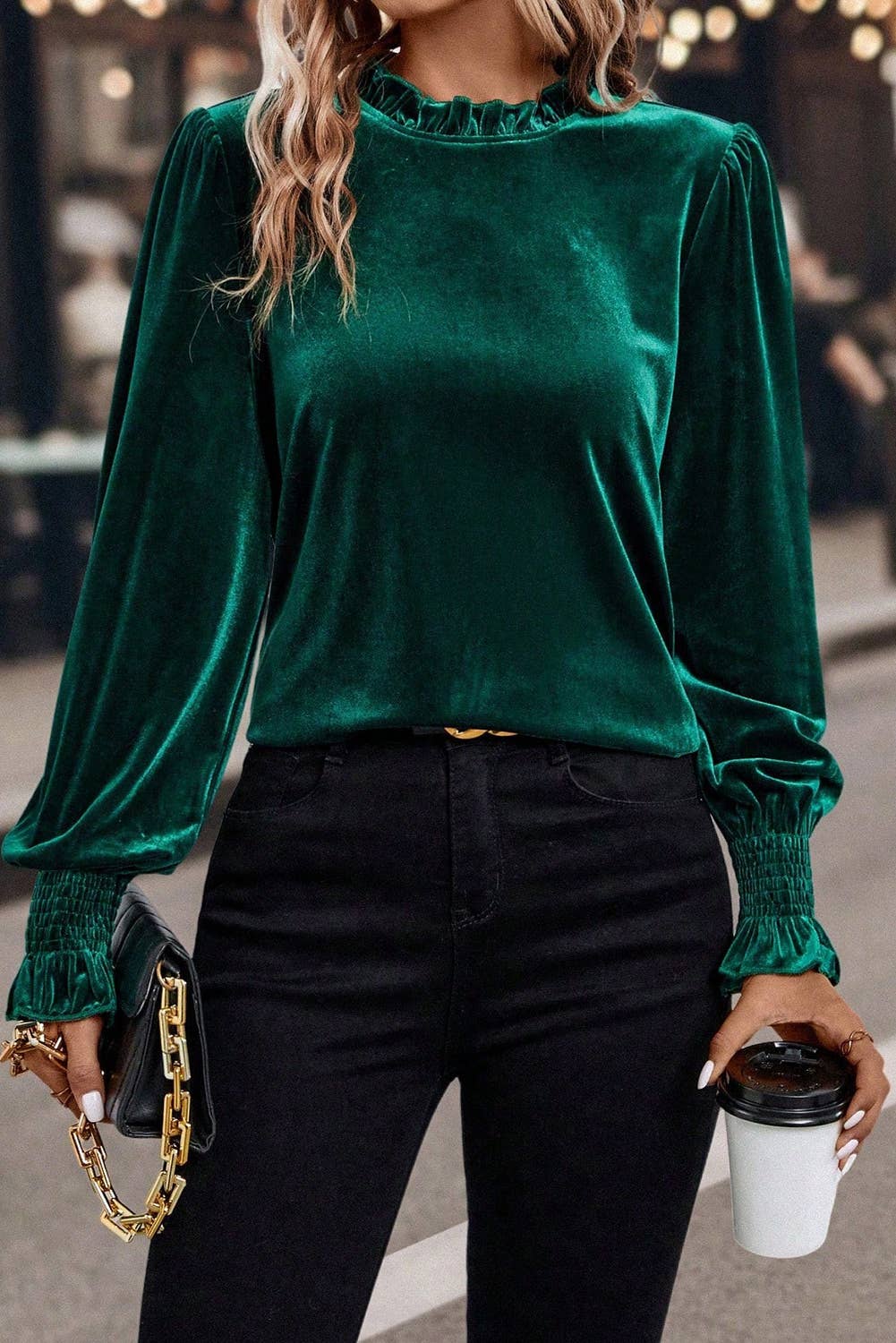 Velvet V Neck Button Down Long Sleeve Elegant Blouse