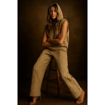 No reviews for Apricot Textured Ruffled Sleeve Zipped Top and Wide Leg Pants Set yet.