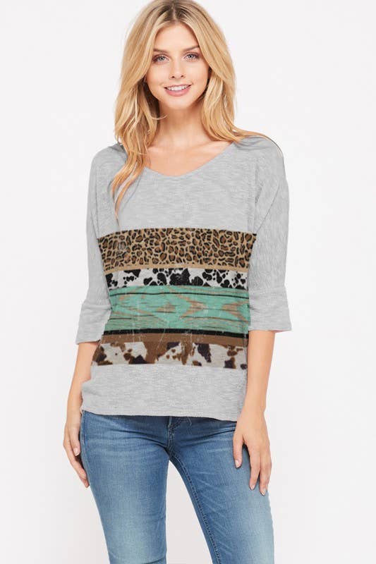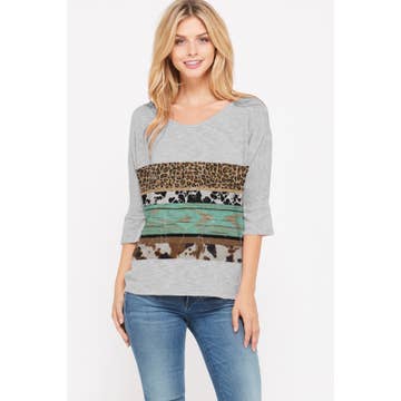 Wholesale Sequins Contrast Tie Dye Anumal Print Mix Top