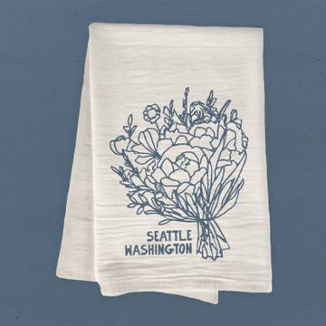 Tea towel featuring an original illustration. Each towel is printed by hand and may have slight variations that add to the charm and beauty. The handmade nature of the towels assures that each one is individually unique. They are absorbent, lint-free, quick-drying, easy to launder and hardy. 24"x36" / 100% flour sack Cotton / Machine Washable Hand screen printed with water-based inks. Designed & printed in the mountains of Montana.
