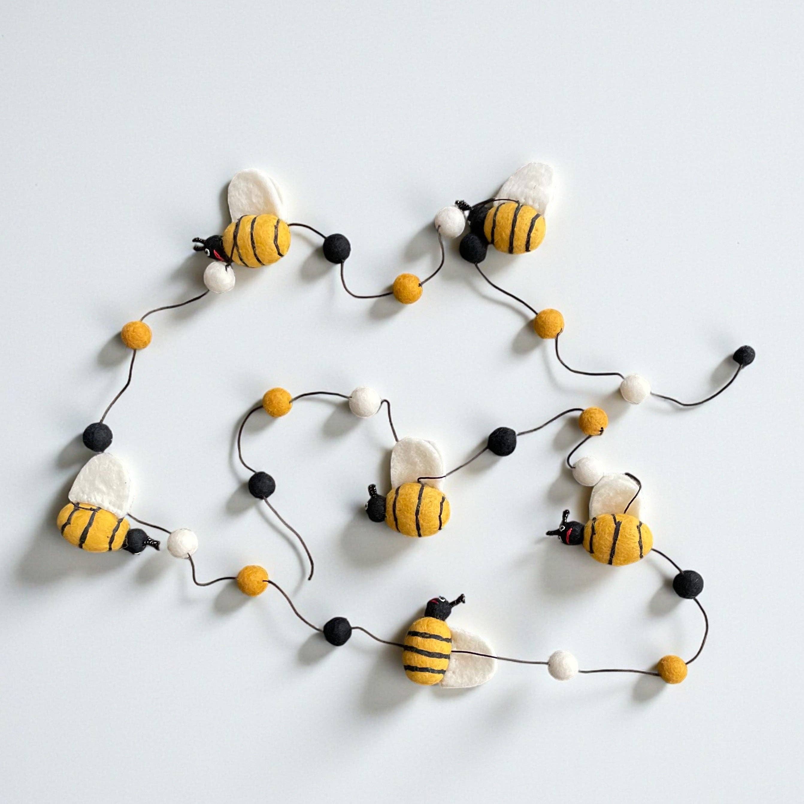 A colourful string of pom poms and cute orange carrots, with a loop on each end for easy hanging. Hand crafted by Fair Trade artisans, this garland is perfect for adding a fresh and cheerful touch to Spring nurseries, Easter celebrations, or a even a garden-themed party. As a handmade product, it has varying shades of colours and is approx. 2m long. The felt is handmade from sustainable wool using traditional methods. Instead of weaving the wool, heat, moisture, and pressure are applied to entangle the fibres and create the beautiful material. Due to the handmade nature of these products each one is unique, but loveliness comes as standard. Each garland comes in a cotton pouch.