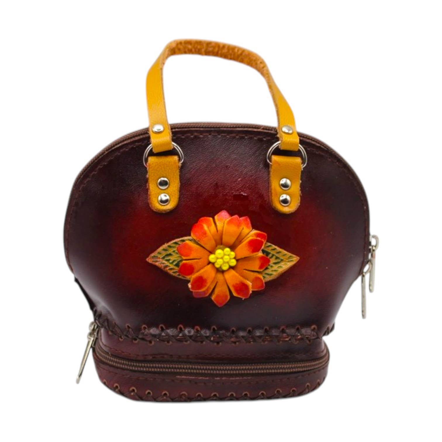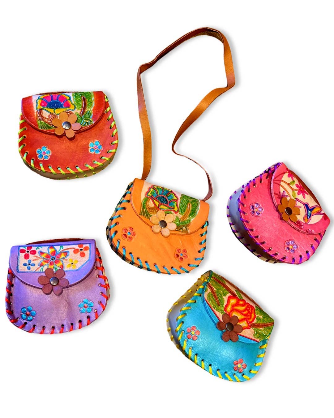 Multicolored Floral Leather Purse Tooled Handmade 5.5" Strap