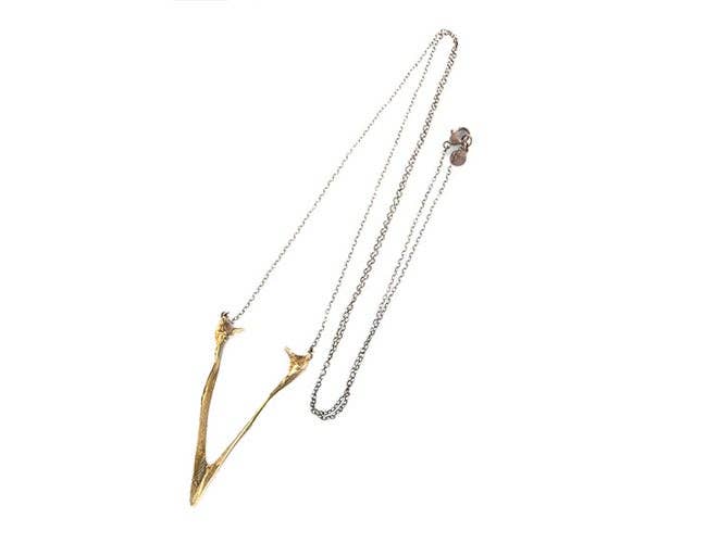 In an effort to make a wishbone pendant as realistic as possible, I decided to cast it directly from a real wishbone replicating every minute detail. Every tiny detail of the bone texture has been captured and enhanced through oxidation and careful polishing. Being cast from a real chicken wishbone, the shape is perfect and proportional. Size: 2-1/8". Weight: 5 Grams. Chain: 24" Burnished Bronze