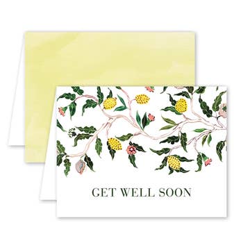 Double floral - get well soon. Card Size - A2 - 4.25x5.5". All greeting cards are packaged inside of a sealed flap clear cello sleeve. All greeting cards are blank inside. 10% of all Instead of Ashes profits are given to a ministry that fights human trafficking.