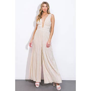 WHOLESALE PLUS RUCHED BODICE TIE BACK TOP WIDE PANT JUMPSUIT