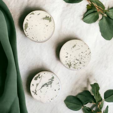Made in United States Formulation Type: Solid / Bar Fragrance Notes: Eucalyptus and Spearmint Scent: Minty Size: Standard Ingredients: baking soda, citric acid, corn starch, fragrance oil, polysorbate 80, eucalyptus essential oil, any of the following possible pigments [red 40, yellow 5, red 27, blue 1, black 2] Weight: 85.05 g (3 oz) Dimensions: 2.5 x 5.1 x 5.1 cm (1 x 2 x 2 in) Product Materials: Plastic-free and Vegan Packaging: Plastic-free Production: Cruelty-free