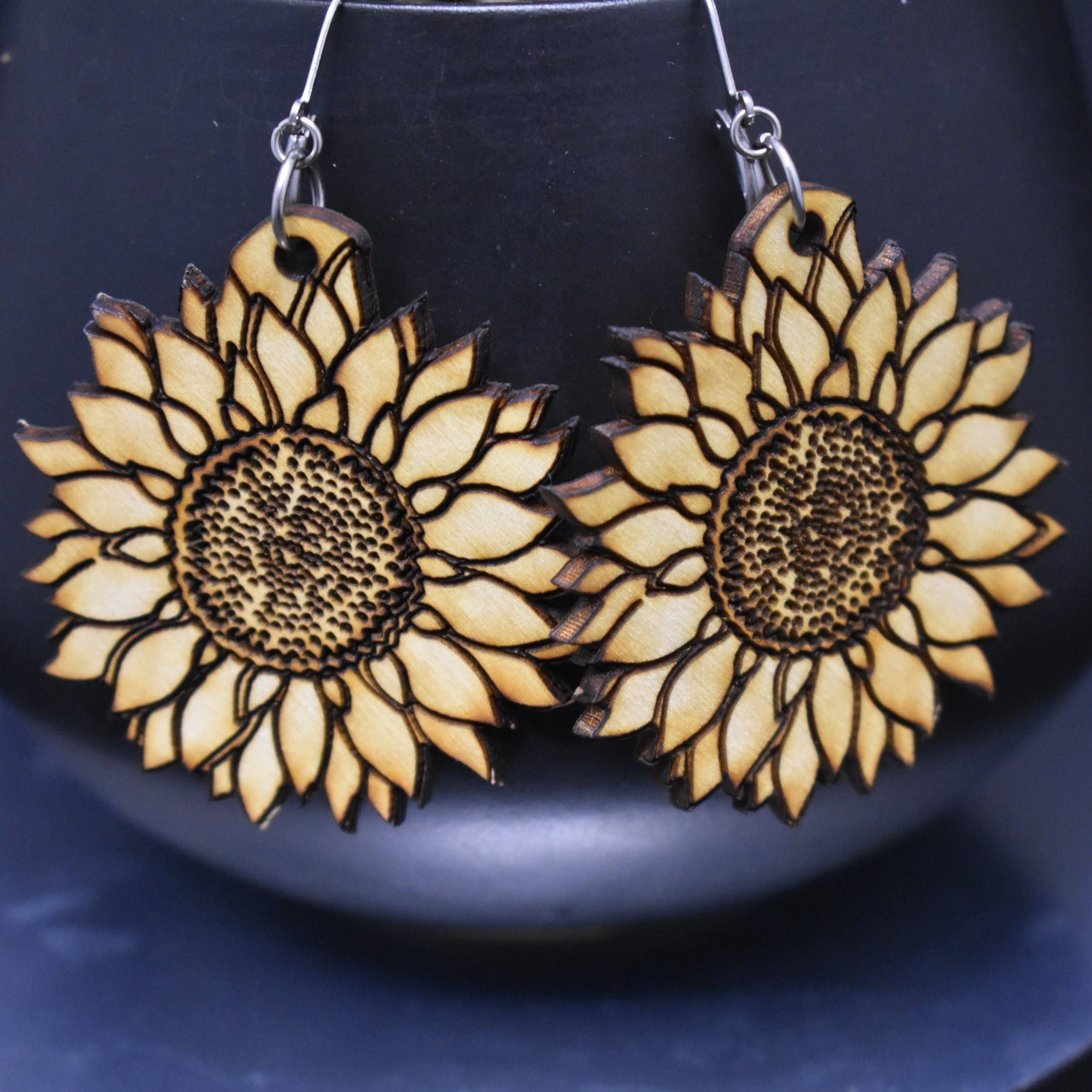Handcrafted polymer clay earrings with wooden studs and hypoallergenic posts.