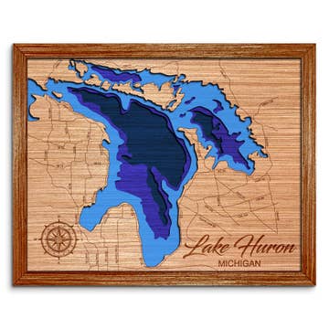 This is a burnt wood engraved street map of Lake Superior designed by Fire & Pine artists. Every Fire & Pine piece is made 100% in South Carolina. Due to the nature of wood and our process, every piece will be unique in wood tone and grain texture.