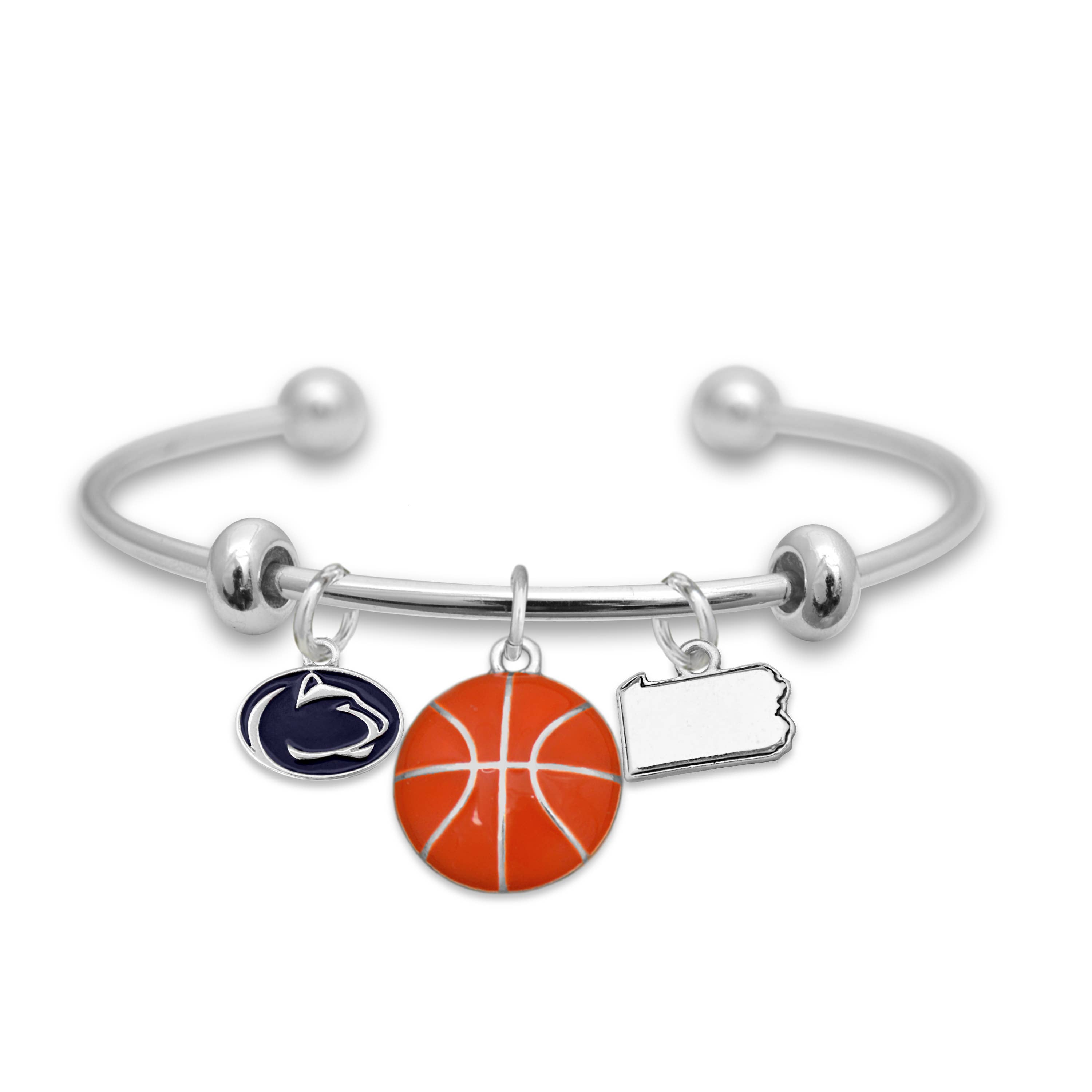 This Three Charm Logo Bangle Bracelet is adorned with three sports themed charms: #1 fan charm, full team color logo charm, football shaped charm with team wordmark. The durable tension clasp ensures care-free wear, so no need to worry it will fall off when cheering for your team as they score the winning touchdown.