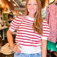 Basic yet fun, our striped puff sleeve top is the casual cool piece you need to update your wardrobe this season. Featuring slightly puffed sleeves with stretchy knit fabrication and a loose fit, you'll constantly reach for this piece time and time again. From errands to lunch, we are pairing this with your go-to denim and tote. stripe knit top, puff sleeve, short sleeve top, balloon sleeve, lightweight, knit fabrication, stretchy, everyday wear, crewneck, summer knit