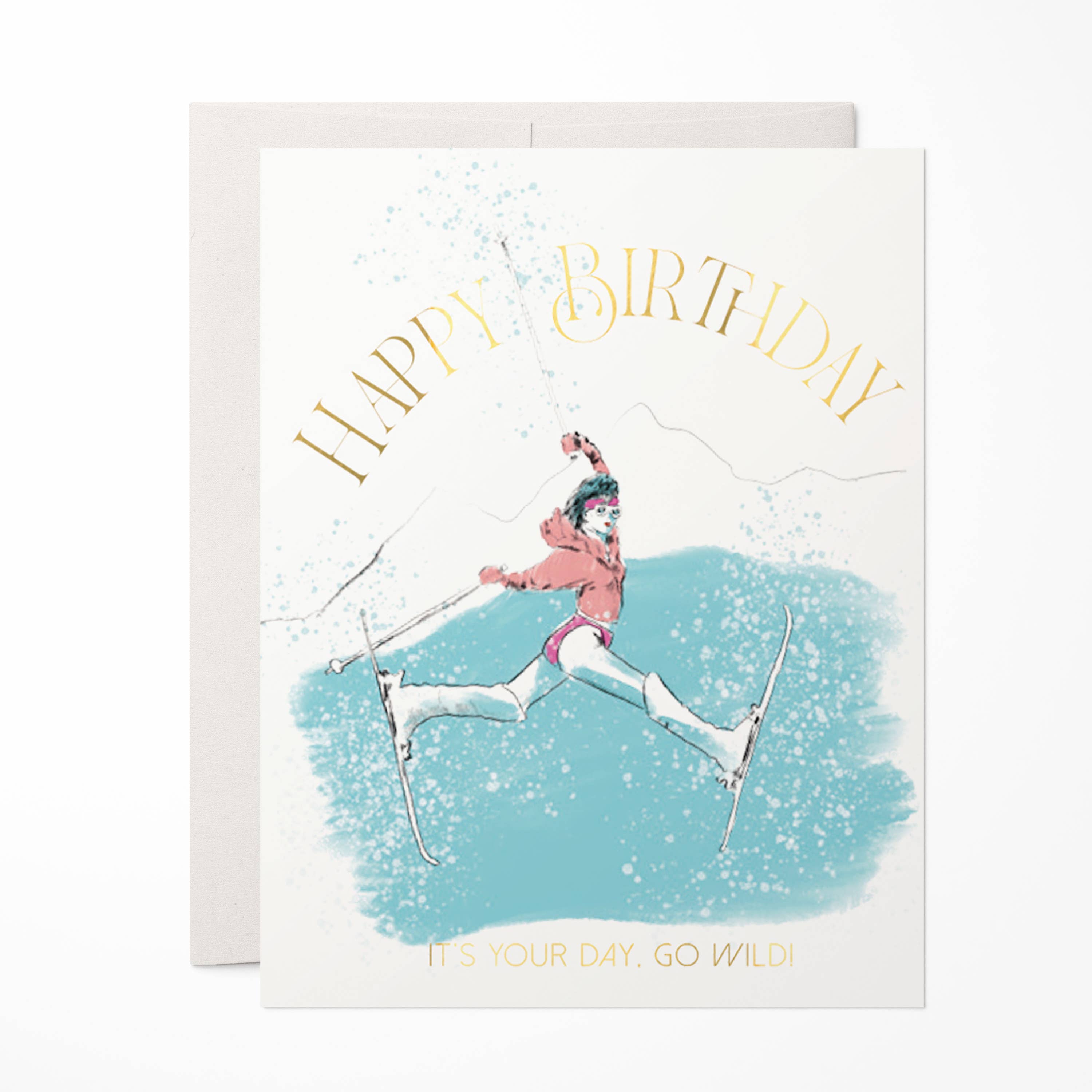 Alpins skier girl, with red jacket, Skier Birthday, Inside: Ski to live -- live to ski Happy Birthday! Size A6 (4 5/8 x 6 1/4”)