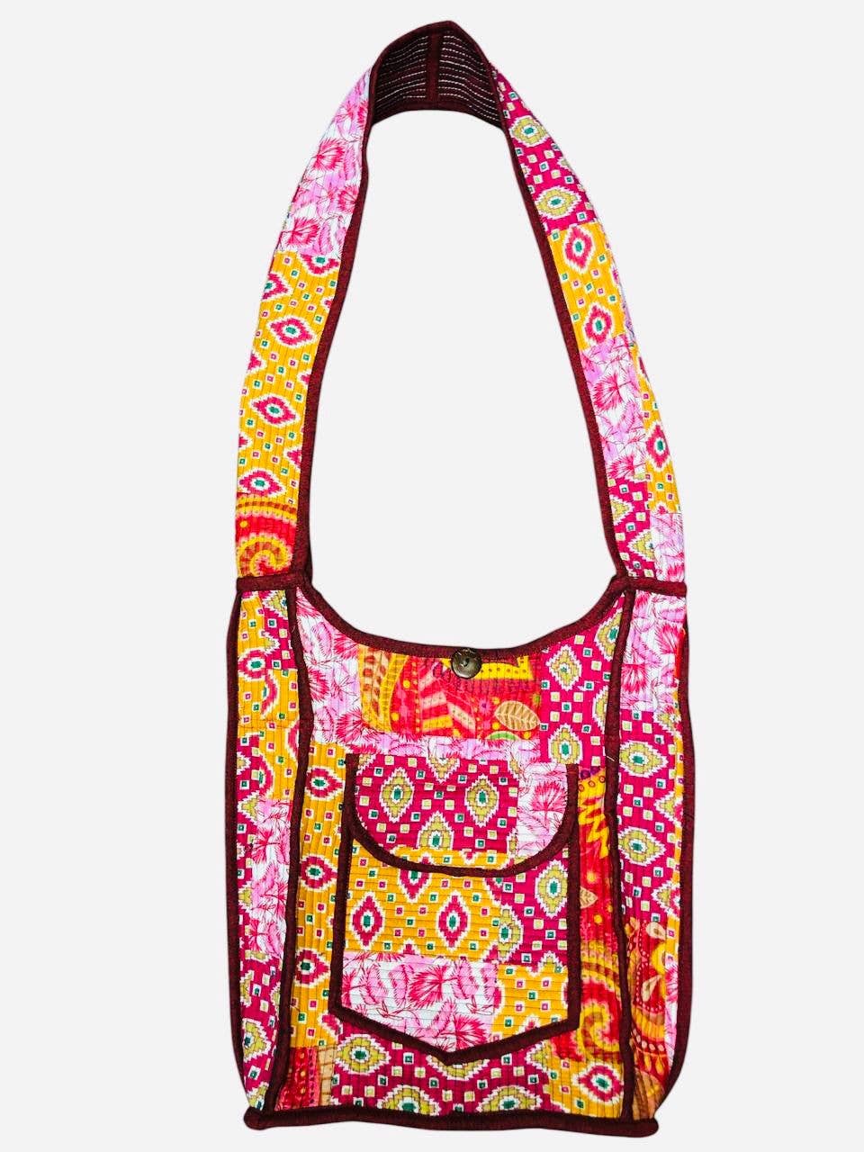 SKU: BG-52 Made in India Bag Size: Medium Color: Orange Embellishment: Quilted Fabric: 100% Cotton Occasion Theme: Everyday Pattern: Floral Product Language: English Weight: 9.07 g (0.32 oz)