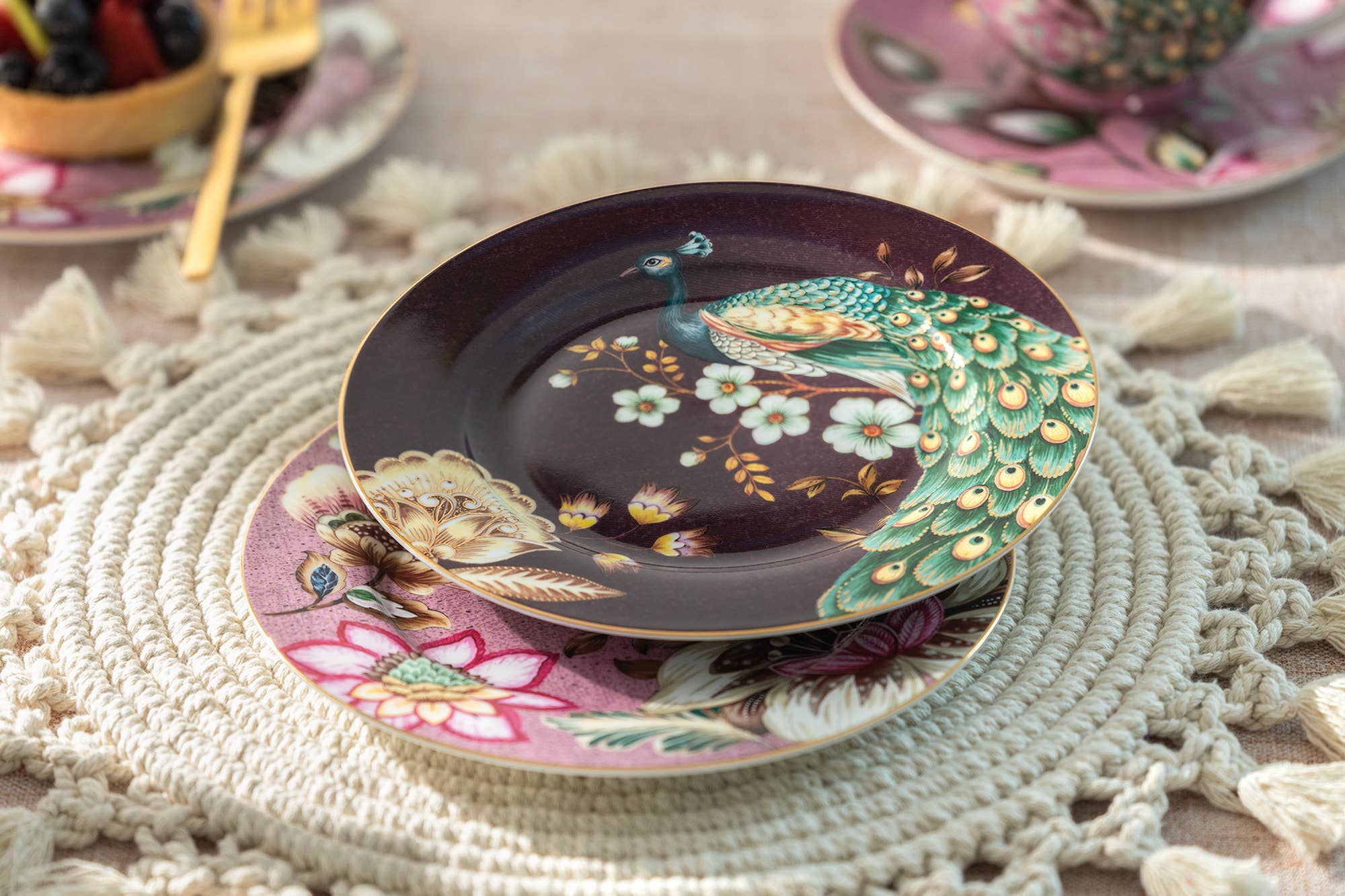 These plates are truly one of a kind, custom designed showstoppers. Modern and new, yet refined and elegant. We've designed it with each individual customer in mind, with many personalized options. Custom order your desired dinner plate; either with a thin gold border or a thick solid gold border. Use these plates together in one meal, or buy only the one that calls your name. Use them for an appetizer, salad or dessert. We're confident you'll fall in love with these....... Soft and ethereal, this new design is whimsical and wonderous. It can be dressed up with a bold gold dinner plate or paired with simple white for more everyday use. Either way, you're bound to have found a unique show plate you and your guests will fall in love with. -set of 4 designed salad plates. -8"" salad plates. -fine bone china.