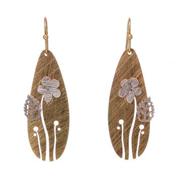 Wholesale Tropical Flower Twig Earring with Silver Foil Accent