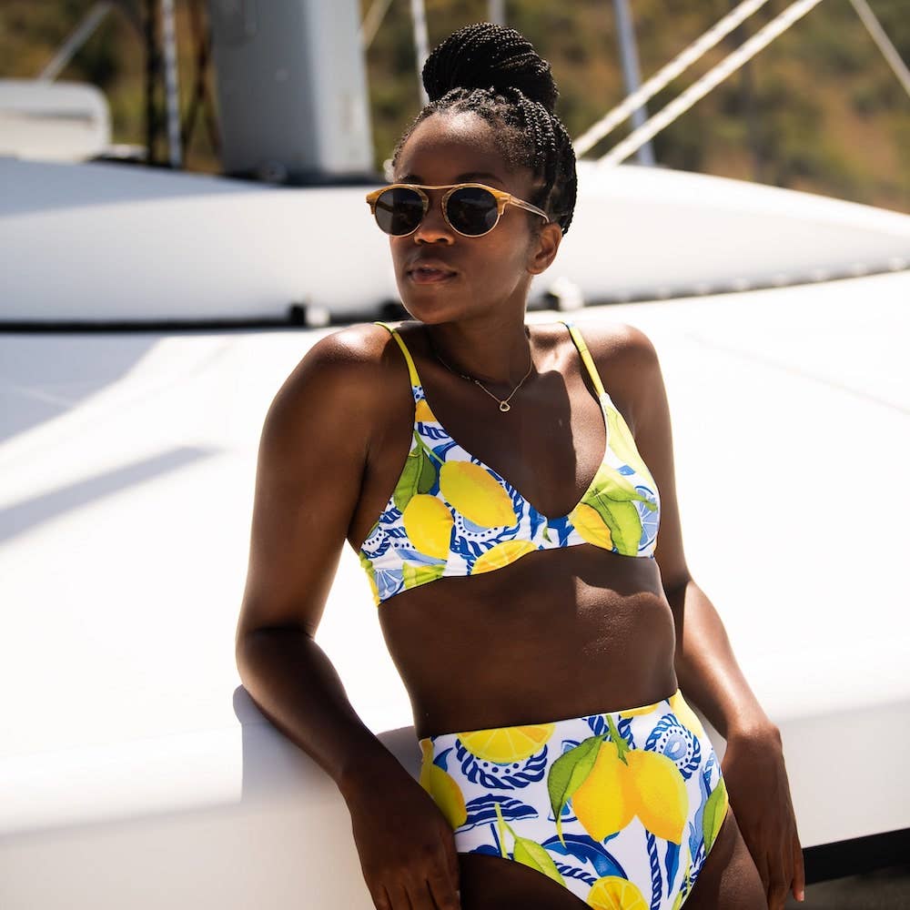 Soak up the sun, the briny breezes — and maybe brush up on your Italian while you’re at it. The Positano tie front bandeau top is sure to give you that “endless summer” energy. Make it a set with The Positano Sporty Bikini Bottom, or match it up with your main squeeze in The Bossitano swim trunks. Details * Bandeau style strapless bikini top with underwire cups, a tie front and removable padding * Super-soft, sun-protective fabric with SPF 30+ * Designed by leading luxury travel blogger and swimwear addict @JetsetChristina * Anti-chlorine and salt-resistant technology to maintain superior shape, color and quality * 80% Polyester, 20% Spandex * Ethically made by an all-women-run team in Colombia