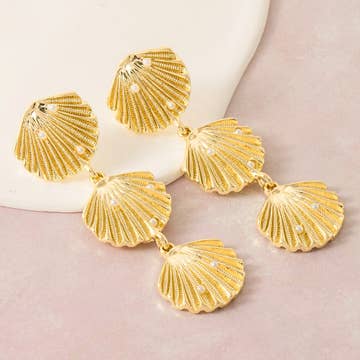 Large designer earrings in the shape of flowers with a shiny finish to subtly reflect light. Solar look and elegance guaranteed. • Stainless steel gilded with fine gold • Water resistant • Do not change color, do not rub off the skin • Hypoallergenic • Length: 50mm, width: 45mm • Finish: matt gold