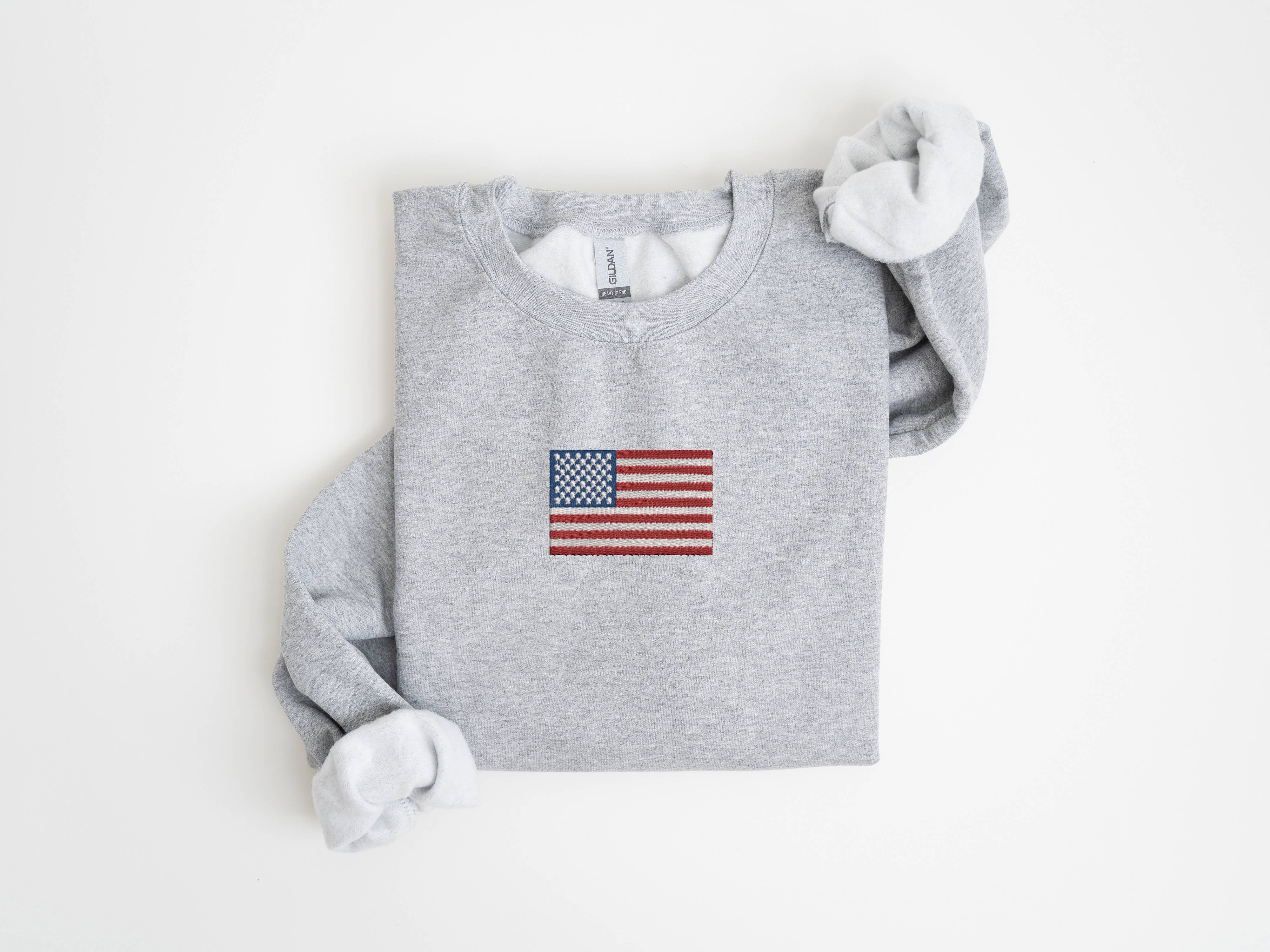 Made in United States Aesthetic: Casual and Minimalist Care Instructions: Machine wash Fabric: 50% Cotton, 50% Polyester Fit: Unisex Neckline: Crew neck Occasion Theme: Fourth of July Occasion: Everyday and Holiday Season: Capsule Sleeve Length: Long Sleeve Theme: Patriotic Product Language: English Weight: 4.54 g (0.16 oz) Dimensions: 0 cm (0 in)