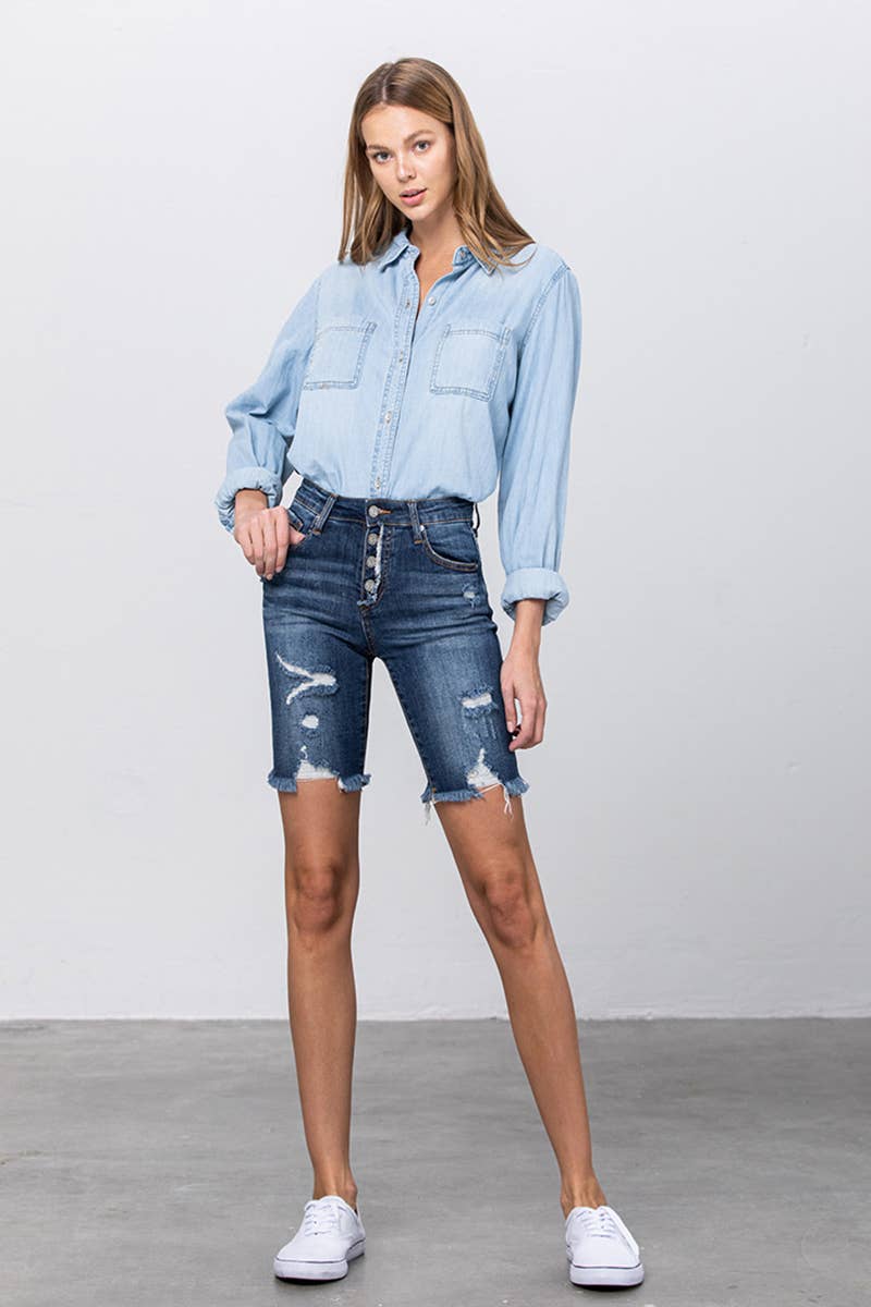 Brand Name: Insane Gene Item Number: S5199 Type: Bermuda Denim Shorts Closure Type: Zipper Fly Detail: Bermuda Shorts, Comfort Stretch Denim, Cut off Denim Shorts Waist Line: Mid Rise Fit Type: Regular Fit Fabric: Comfort Stretch Material: Denim Composition: 99% Cotton, 1% Spandex