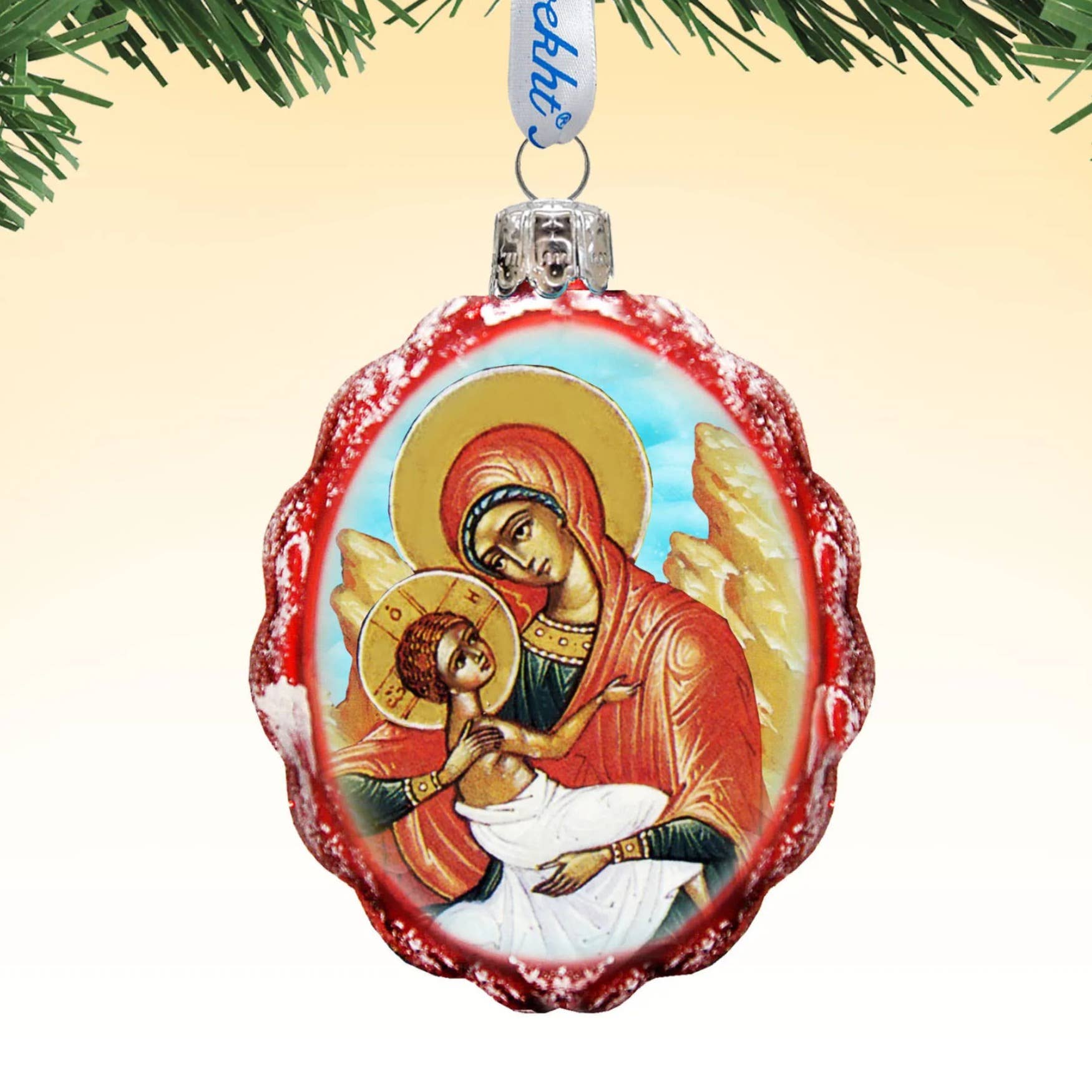 Mary and Jesus Ceramic Ornaments -FRONT & BACK PRINT -3" x 3" -DIRECT PRINT THAT GIVES VIBRANT IMAGE QUALITY -RIBBON FOR HANGING -DOUBLE SIDED PRINT -COMES IN A GIFT BOX