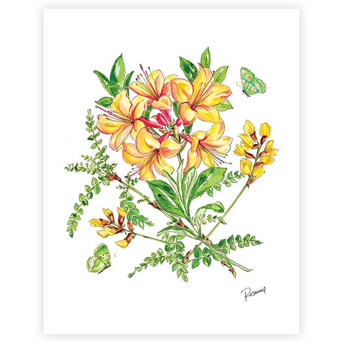 Do you sell artwork at your store? Then your customers are sure to love our Kentucky print! The Kentucky print features the state flower and other locally found wildflowers, is created in Amanda Klein’s signature style of fluid watercolor topped with detailed ink outlining. - Available in 3 standard print sizes: 5” x 7”, 8” x 10” and 11” x 14” - Private label- not sold on Amazon, etc. - Sold unframed, although very easily frameable (a very easy way to upsell!) - Small batch printed on thick, 220# paper - Prints are packaged with backing board, in a plastic sleeve, with an identification sticker describing the flowers painted by Amanda Klein. They are ready for retail display! - 100% Made in America // Woman owned + operated Featured Kentucky Wildflowers: - Goldenrod (State Flower) - Kentucky Pride Crimson Clover - Prairie Rose - Bloodroot - Grape-Hyacinth