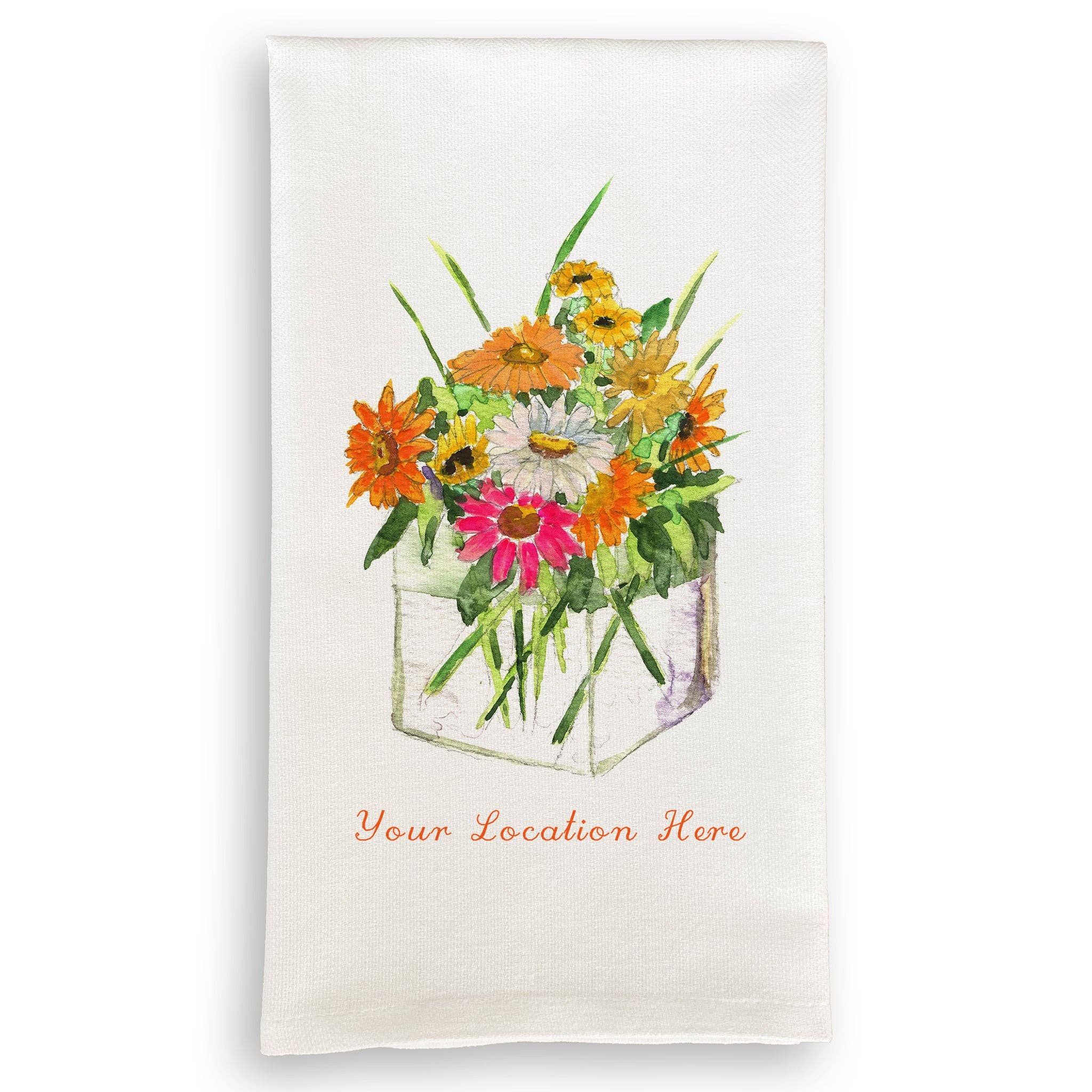 Tea towel featuring an original illustration. Each towel is printed by hand and may have slight variations that add to the charm and beauty. The handmade nature of the towels assures that each one is individually unique. They are absorbent, lint-free, quick-drying, easy to launder and hardy. 24"x36" / 100% flour sack Cotton / Machine Washable Hand screen printed with water-based inks. Designed & printed in the mountains of Montana.