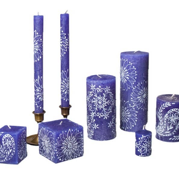 *Lovingly hand poured, and hand painted in South Africa. *Crafted primarily by single mothers from the local rural community. *On average, the artisans support an extended family of 12-15 people. MINMUM PURCHASE: 9” taper candles are tied in a matching pair with a story card for wholesale price of $6.75 per pair. Minimum purchase for tapers is 3 pairs from each design collection for $20.25. PRODUCT DESCRIPTION: *Highest quality natural paraffin wax with 100% cotton wick *Unscented, smokeless, and free from added toxins *Tapers packaged as a matched pair *Each candle is uniquely made. Your delivered candle will likely appear slightly different from the website photo, but consistent with the theme of the collection. CANDLE CARE: *First burn time: 1-hour for every inch diameter *Wicks should always be cut to ¼” prior to lighting *Avoid drafts – they cause dripping! *Ensure candles are extinguished prior to leaving the room
