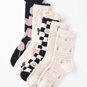 Heart-shaped pink and red strawberries interspersed with playful daisies make these strawberry socks the perfect addition to your Valentine's Day, Spring, and Summer outfits. Set against white sheer fabric for maximum color pop with a ruffle cuff for ultra sweetness. One Size. Recommended fi US women's shoe sizes 5.5-10. 200 Needle Count. ✨ Funky yet elegant - no silly or childish patterns 🧦 Premium quality - durably made with comfortable stretch 👗 Unique - the perfect accessory to add individuality to your outfits