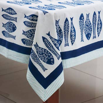 Tablecloth 60X60 Striped Fish Blue