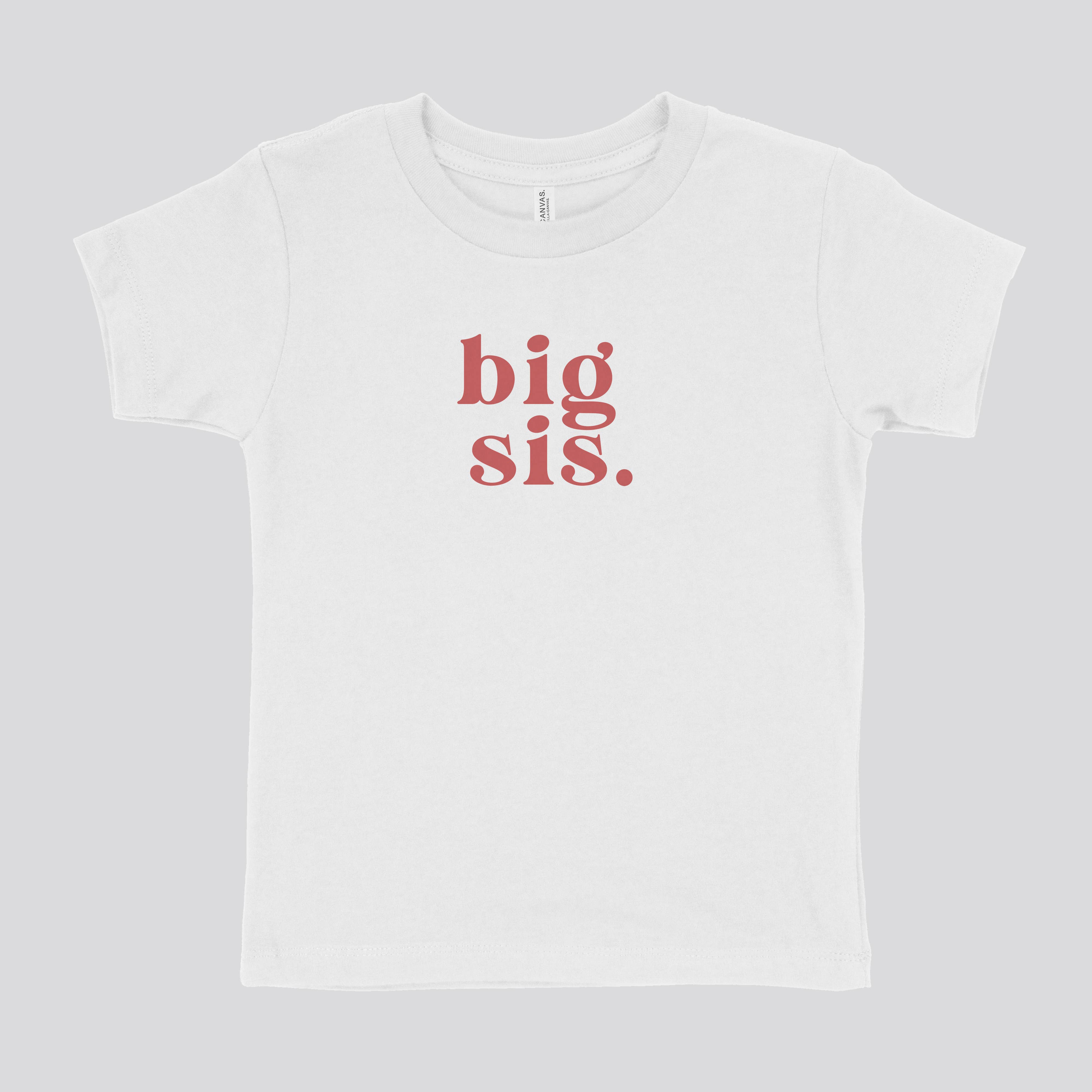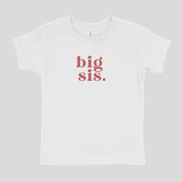 Is someone about to become a big sister?! This super soft dusty rose tee shirt is decorated with a white "big sis" graphic. Customers love to dress their first born in this tee shirt as a way to announce that a new little brother or sister is on the way. Once the gender of the new baby is revealed, coordinate this tee with a lil sis or lil bro outfit for an adorable sibling pairing. Shirt Color: Dusty Rose Graphic Color: White Material: 5oz 100% combed ringspun cotton Features: Topstitch ribbed collar, side seam construction, tagless Care: Machine washable, tumble dry low, wash with like colors Each shirt is hand-pressed with love using child safe inks.