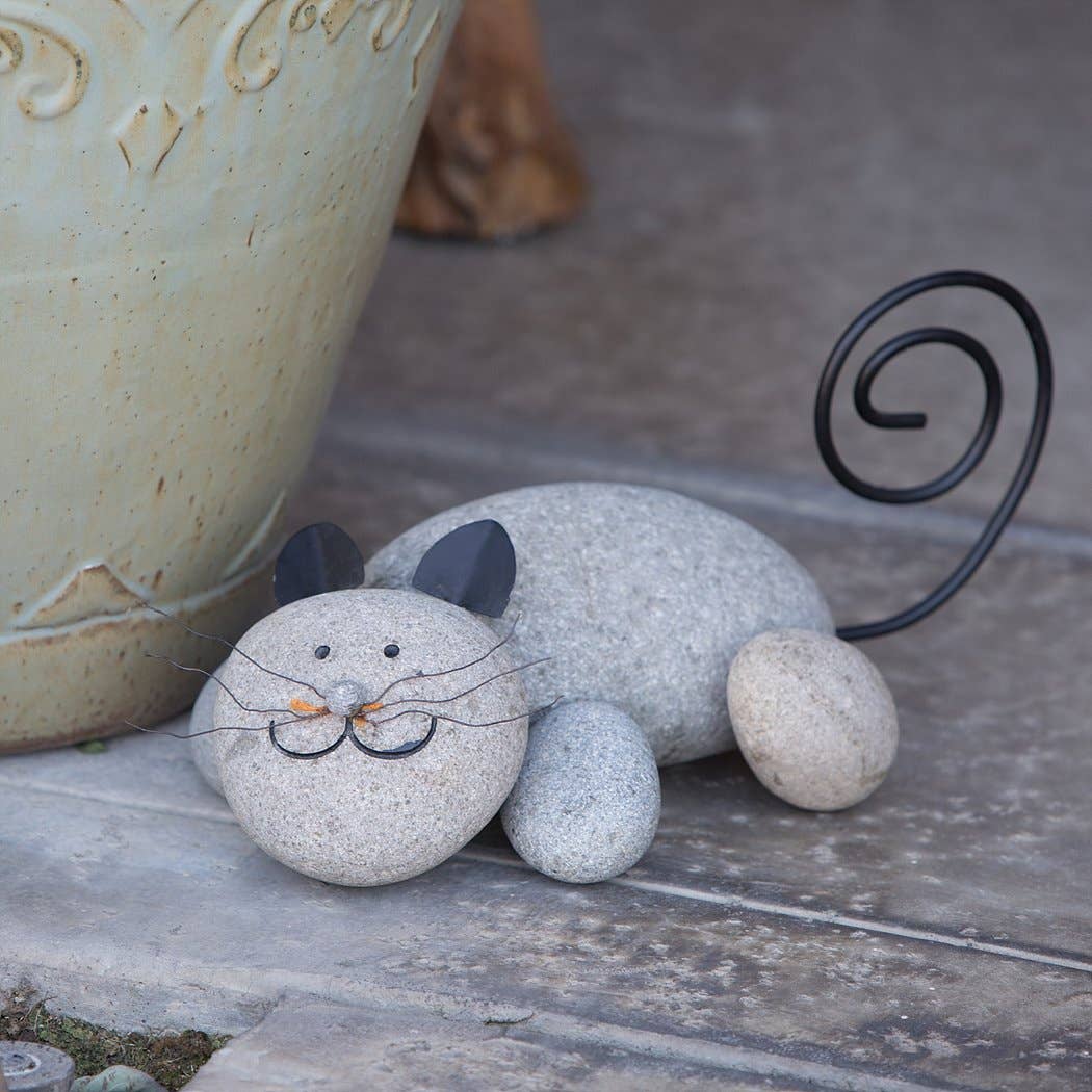 Handmade Natural Stone Cat Bookshelf Sculpture