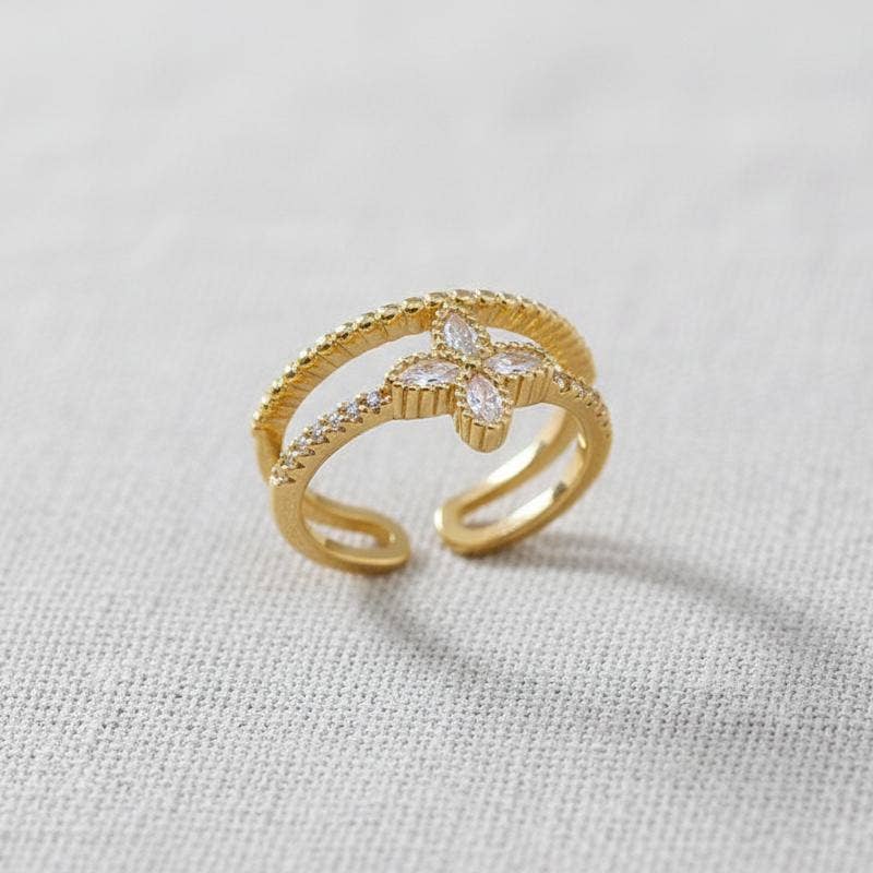 Our Gold Mary Jane Ring, under the Aim Eternal brand, is an open adjustable ring that fits a size US 6. This ring brings together our passion for unique designs and high-quality craftsmanship. It's a versatile piece that complements any occasion or outfit. Let it be a part of your memorable moments or a thoughtful gift for a loved one.