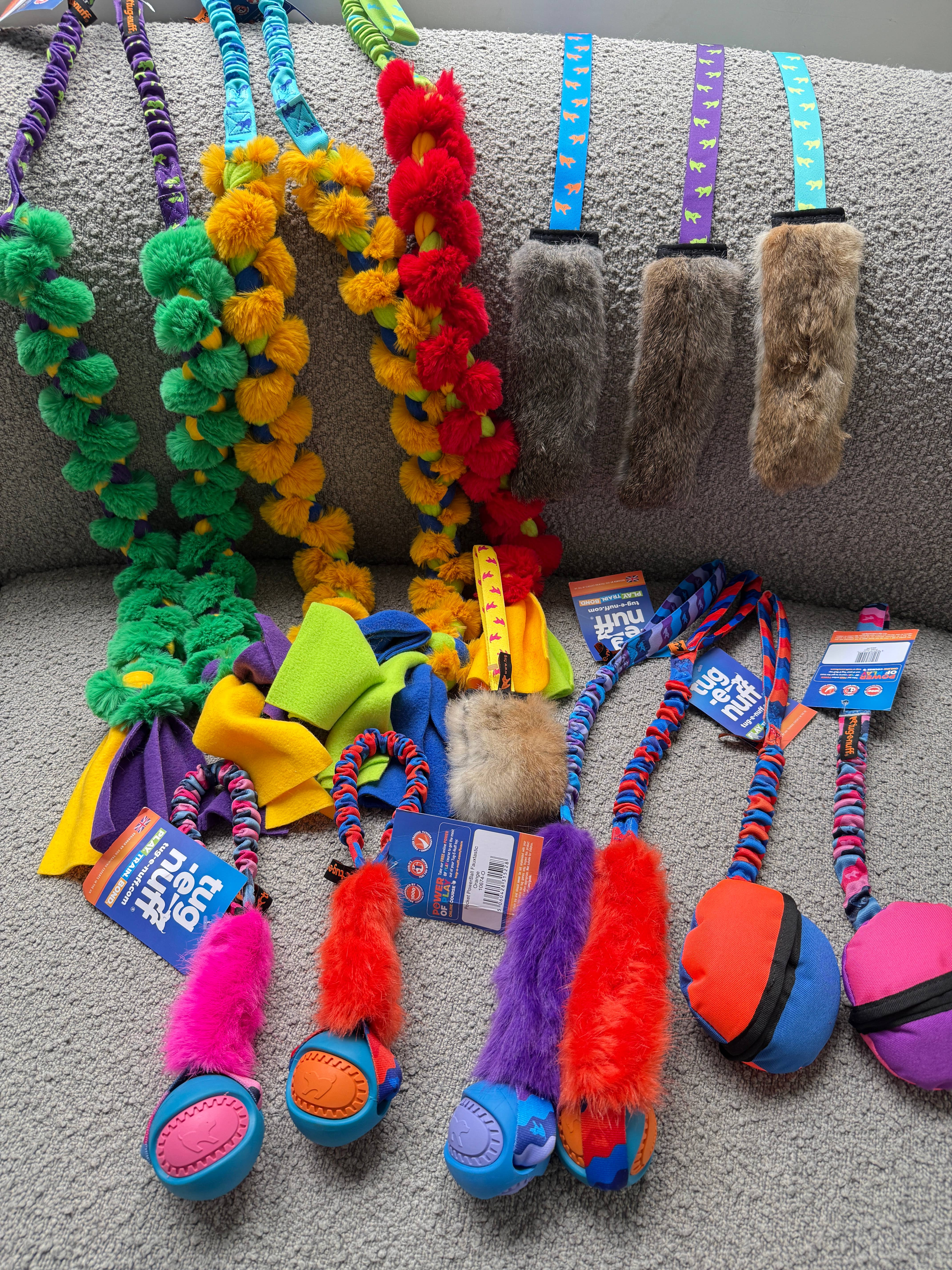 Wholesale Rabbit Fur Squeaky Bungee Chaser Tug Toy | Tug-E-Nuff