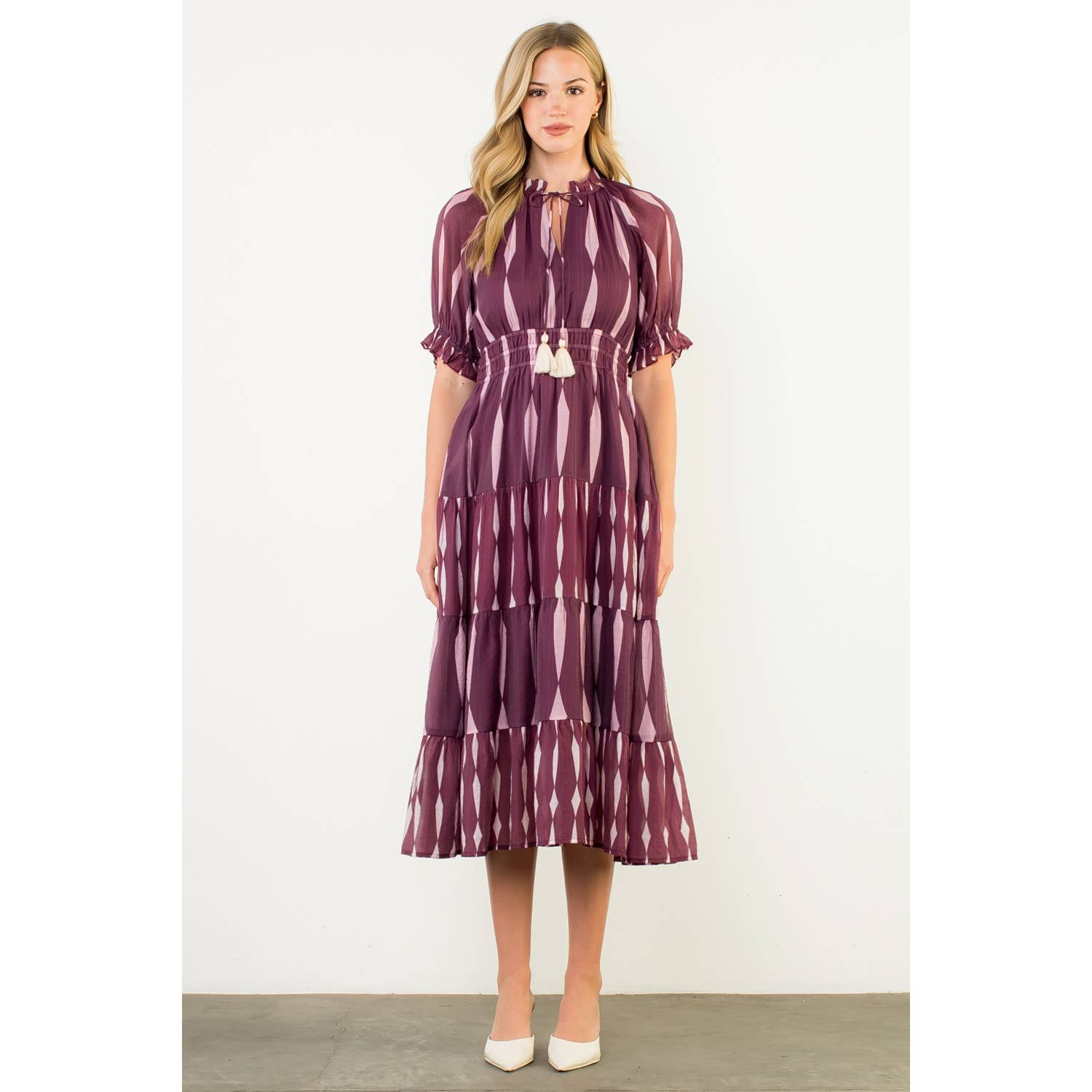 PLUM OCHRE Lights Out Double Ruffled Hem Wrap Dress for wholesale on Faire5
