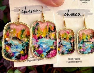 Extremely light weight Hand painted leather Gold plated or sterling silver plated earring posts or hooks Hypoallergenic/Nickel Free