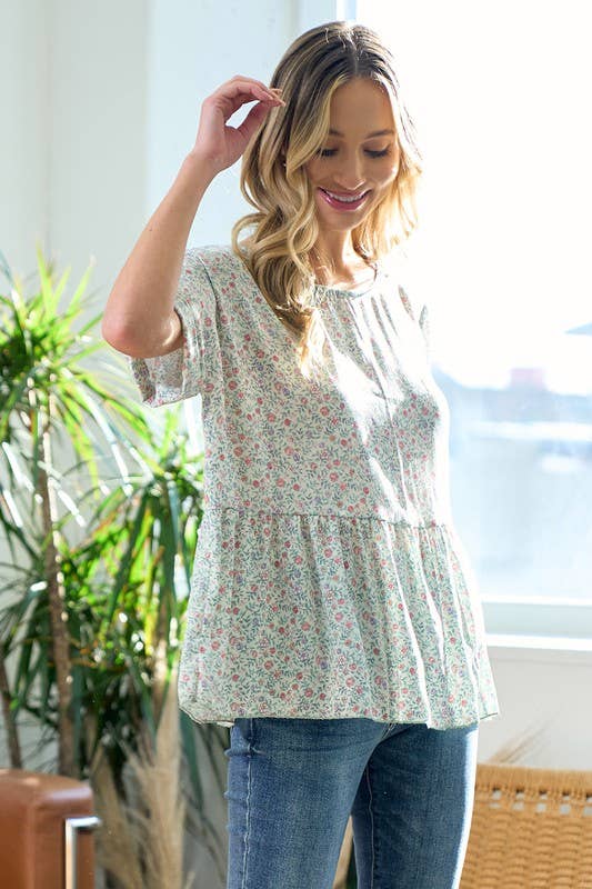 Blue Garden Mixed Floral Top-PIT6206
