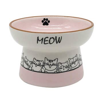 This ergonomic design enables your feline friend to enjoy their meal at an elevated position minimizing strain on both the spine and neck. FEATURES * Tilted position keeps food piled in center of the dish * Minimizes food wastage and spillage * High gloss easily wipeable finish * 10 oz / 1.25 cups capacity